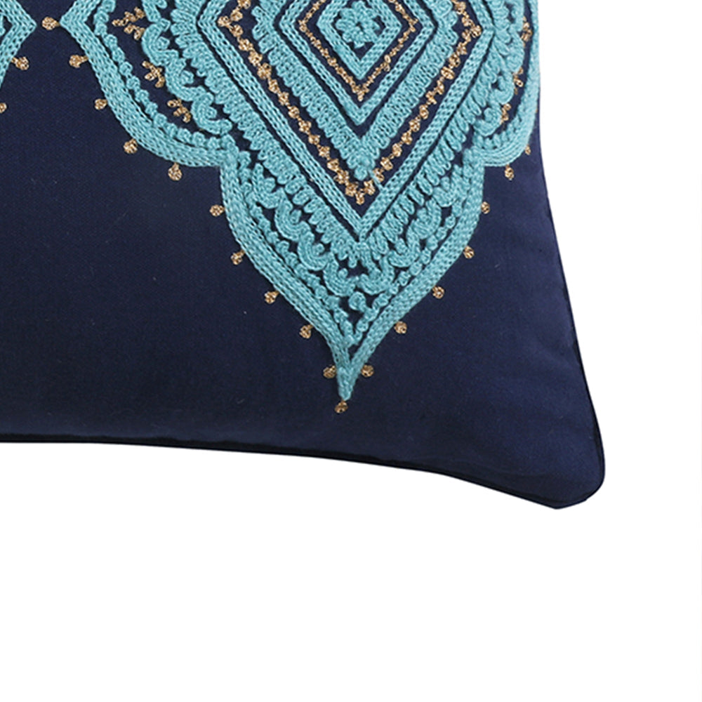 The Embroidered Medallions decorative pillow matches perfectly with the Levtex Home Amelie bedding collection. This pillow is sized at 12 x 24in. and features three gorgeously detailed, embroidered medallions on a navy pillow. The color palette makes this a versatile accessory for your bed, couch or favorite chair. The pillow comes pre-filled with a soft. luxurious feather inner.