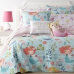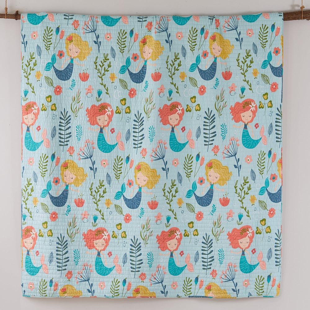 The Andrina Reversible Kids Quilt Set by Levtex Home is inspired by children’s fairytales about mermaids. Offered in multicolor, this design will immediately transform your kid’s bedroom. This reversible quilt features colorful mermaids swimming through their garden of aquatic flowers and plants on the front, reversing to a detailed pattern of shells in coral and blue on the back. The Quilts have a cotton front and back, filled with a polyester filler, and are machine washable. Your kid will surely enjoy this for years to come!