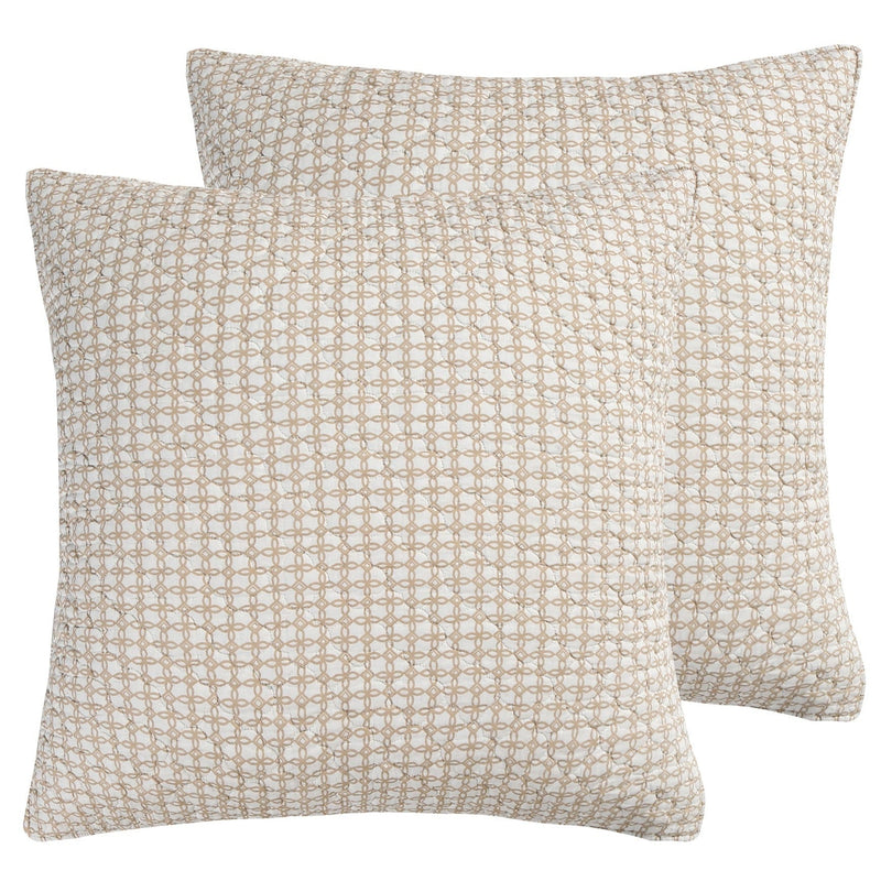 The Angelica euro shams are the perfect complement to the Levtex Home Angelica collection. This is the perfect accessory to add a layer of dimension and truly complete your bedroom. Sized at 26x26in., the euro shams feature an intricate geometric lattice design in taupe. Made from 100% cotton, the Angelica euro shams are easy to care for. They come as a set of 2 without a filler.