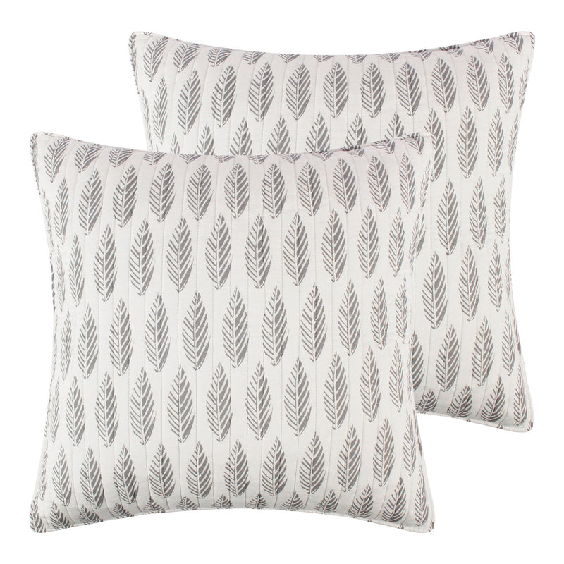 The Ashika Quilted Euro Sham Set of 2 by Levtex Home is inspired by strolling along a tropical flower path. Offered in grey and cream, this design will immediately transform your bedroom. These shams feature light grey leaves on a cream ground. The Euro Sham Set of 2 (26x26in.) is cotton, quilted with a cotton rich filler and is machine washable. Pillow inner not included. Enjoy this for years to come!