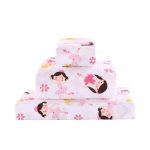 The Bella Twin Kids Sheet Set by Levtex Home is inspired by princess fairy tales. Offered in pink, this design will immediately transform your kid’s bedroom. The design features a cute tossed pattern of dancing ballerinas on a pink background, with flowers in complement. The set includes a Twin fitted sheet (39×75), a top sheet (66x96in.), and a matching pillow case (21x30in.). Your kid will surely enjoy this for years to come!