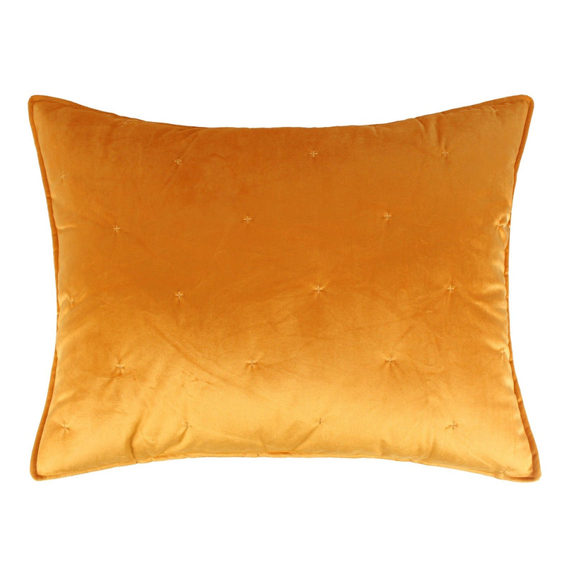 The Birch Hill Calabria Standard Sham by Levtex Home is striking, and rich. Offered in deep gold, this design will immediately transform your bedroom. Made with the softest lightweight poly velvet, this sham features a deep gold color. It is a rich gold velvet quilted in a sophisticated dot stitch quilting pattern on the front and a matching microfiber on the reverse. It is machine washable and includes one sham with no pillow inner. Enjoy this for years to come!