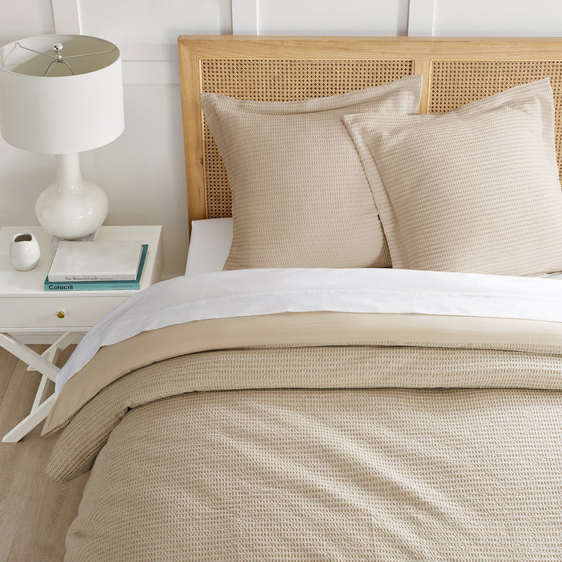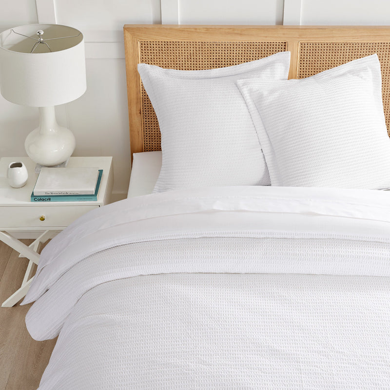 The Cloud Waffle Euro sham collection by Levtex Home is versatile and luxurious.?Offered in various colors, this design will immediately transform your bedroom.?Made with a soft, luxurious cotton, this euro sham features a cuddly waffle pattern.?It is unfilled and comes as a set of 2 (26x26in.). The Cloud Waffle Euro sham is machine washable.?Enjoy this for years to come!