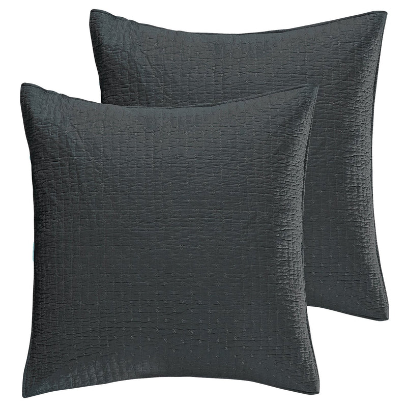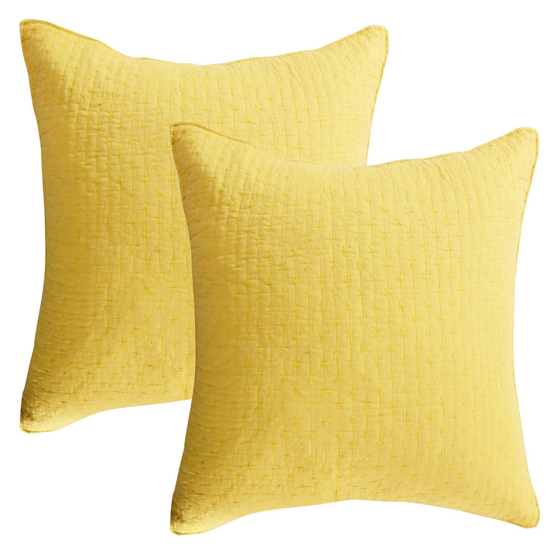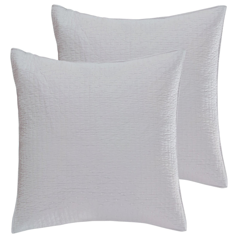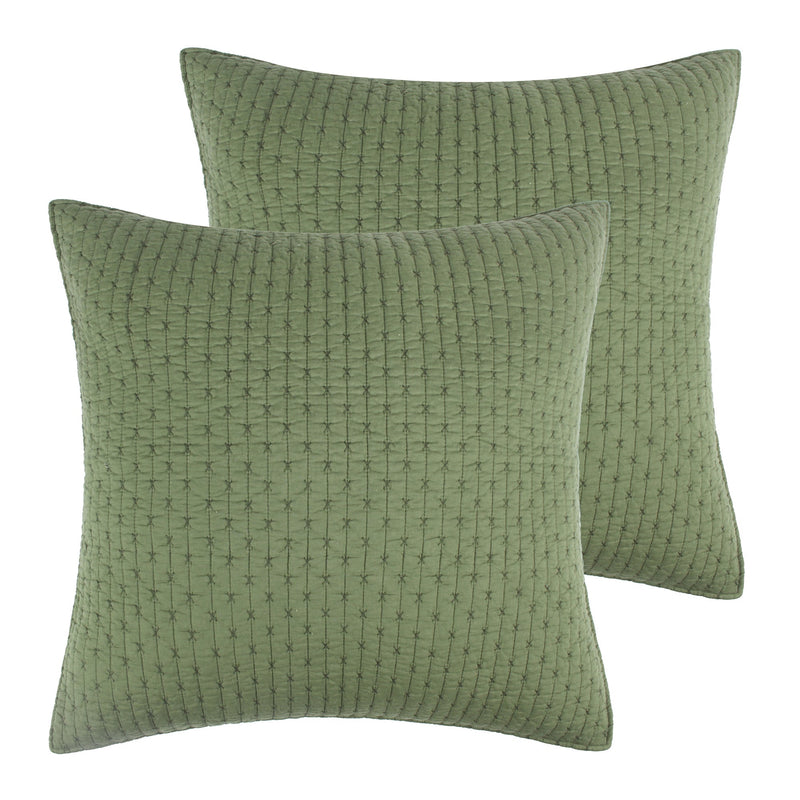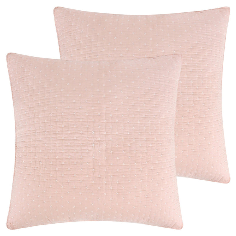 The Cross Stitch euro shams are the perfect complement to the Levtex Home Cross Stitch collection. This is the perfect accessory to add a layer of dimension and truly complete your bedroom. Sized at 26 x 26 in., the euro shams feature a simple cross stitched design and comes in many beautiful colors allowing you to mix and match giving you endless possibilities. Made from 100% cotton, the Cross Stitch euro shams are easy to care for. They come as a set of 2 without a filler.