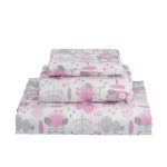 The Daniella Owl Twin Kids Sheet Set by Levtex Home is inspired by sweet bedtime stories. Offered in pink, grey, and white, this design will immediately transform your kid’s bedroom. The design features an adorable tossed pattern of sleeping owls in pink and grey on a white ground, with woodland critters and plants surrounding in complement. The set includes a Twin fitted sheet (39×75), a top sheet (66x96in.), and a matching pillow case (21x30in.). Your kid will surely enjoy this for years to come!