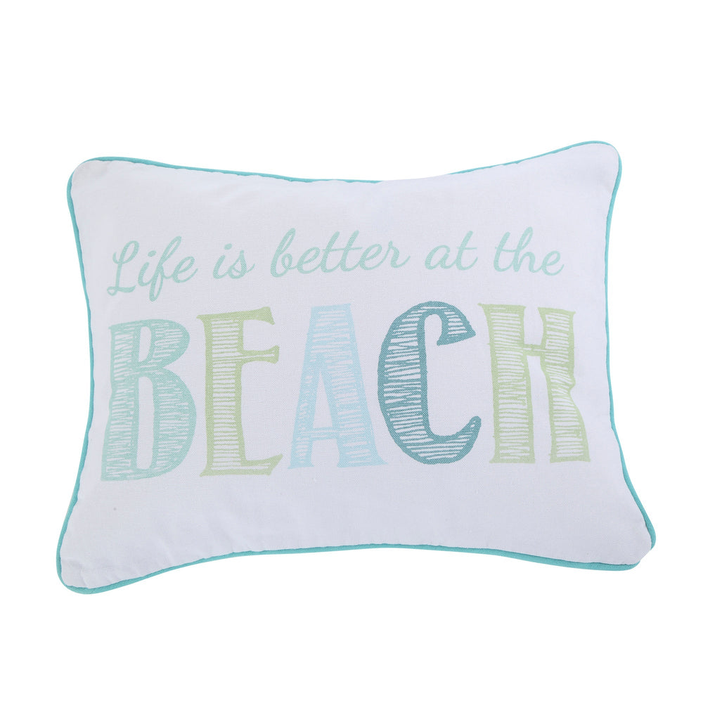 Home COASTAL BEDDING Del Ray Embroidered Life is Better Pillow