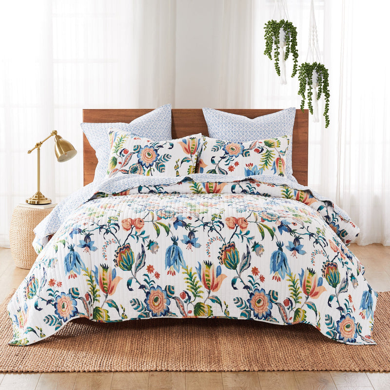 The Eleni Quilted Euro Sham by Levtex Home is inspired by antique French wallpaper. Offered in blue and white, this design will immediately transform your bedroom. These shams feature a mini stamped tile design in blue on white. The Euro Sham (26x26in.) is microfiber, quilted with a cotton rich filler and is machine washable. Pillow inner not included. Enjoy this for years to come!