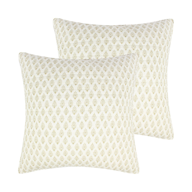 The Emel euro shams are the perfect complement to the Levtex Home Emel collection. This is the perfect accessory to add a layer of dimension and truly complete your bedroom. Sized at 26 x 26 in., the euro shams feature a luxurious intricate mini-medallion pattern in ochre on cream ground. Made from 100% cotton, the Emel euro shams are easy to care for. They come as a set of 2 without a filler.
