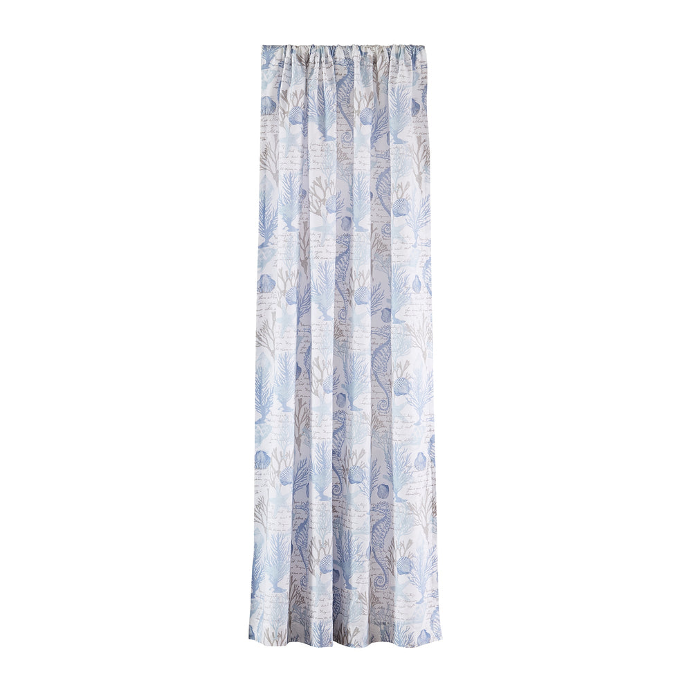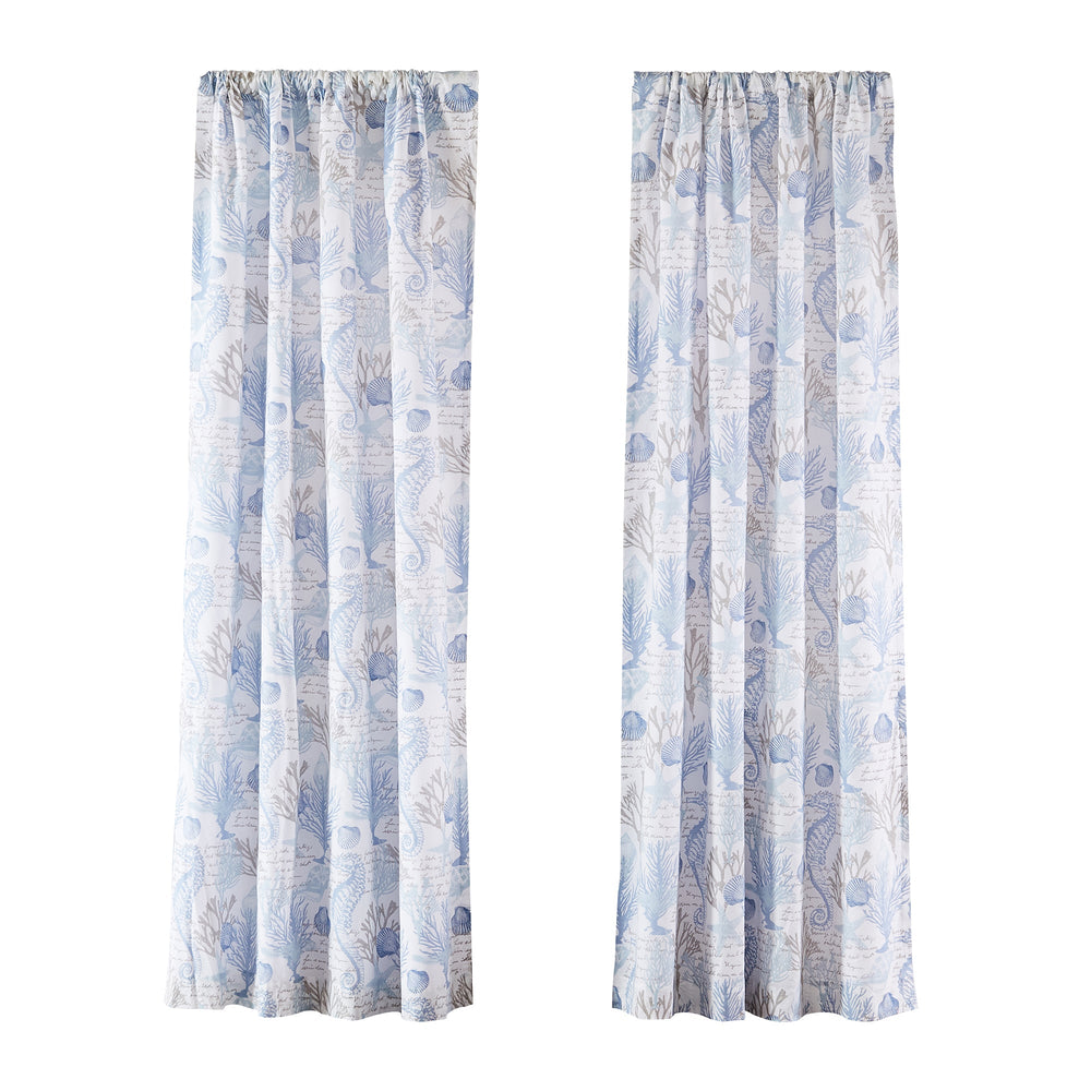 - The Galapagos drape panel complements the Levtex Home Galapagos collection. This is the perfect accessory for any bathroom. Sized at 55x84in., features an ocean-inspired, sophisticated, fun coastal pattern. Made from 100% cotton, the Galapagos decorative curtains are easy to care for. It is lined with a light polyester lining. These come with a rod pocket ready for installation.
