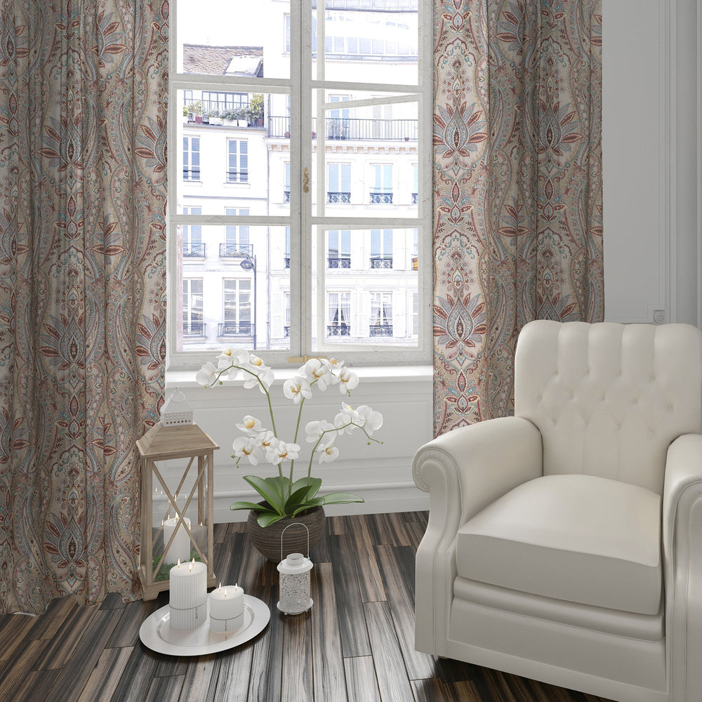 - The Kasey Drape Panel is the perfect accessory for any window in your home. These drape panels particularly complement the Levtex Home Kasey bedding collection. Sized at 55x84in., these drape panels feature detailed bohemian print in brown and blue. The sophisticated color palette makes this a versatile accessory for any room in your home. These panels are lined with a light polyester liner and come with a rod pocket ready for installation.