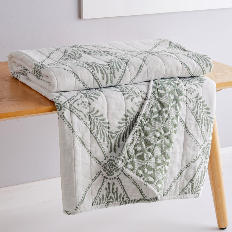 Home FLORAL BEDDING Kemala Sage Quilted Throw