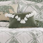 The Tassel decorative pillow matches perfectly with the Levtex Home Kemala Sage bedding collection. This pillow is sized at 14x18in. and features a sage corduroy ground with cream tassels in a V shape giving the appearance of an envelope. The sage and cream color palette makes this a versatile accessory for your bed, couch or favorite chair. The pillow comes pre-filled with a soft, luxurious feather inner.
