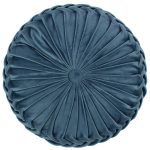 The Round Navy Velvet Decorative Pillow matches perfectly with the Levtex Home Kimpton Navy bedding collection. This pillow is sized at 16in. Round and features round pleated navy velvet with a button center. The navy velvet color palette makes this a versatile accessory for your bed, couch or favorite chair. The pillow comes pre-filled with a soft, luxurious polyester inner.