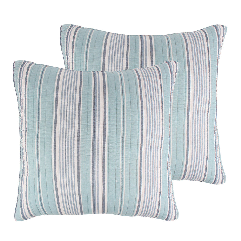 The Lacey Sea euro shams are the perfect complement to the Levtex Home Lacey Sea collection. This is the perfect accessory to add a layer of dimension and truly complete your bedroom. Sized at 26 x 26 in., the euro shams feature a printed textured traditional stripe in shades of blue and white. Made from 100% cotton, the Lacey Sea euro shams are easy to care for. They come as a set of 2 without a filler.