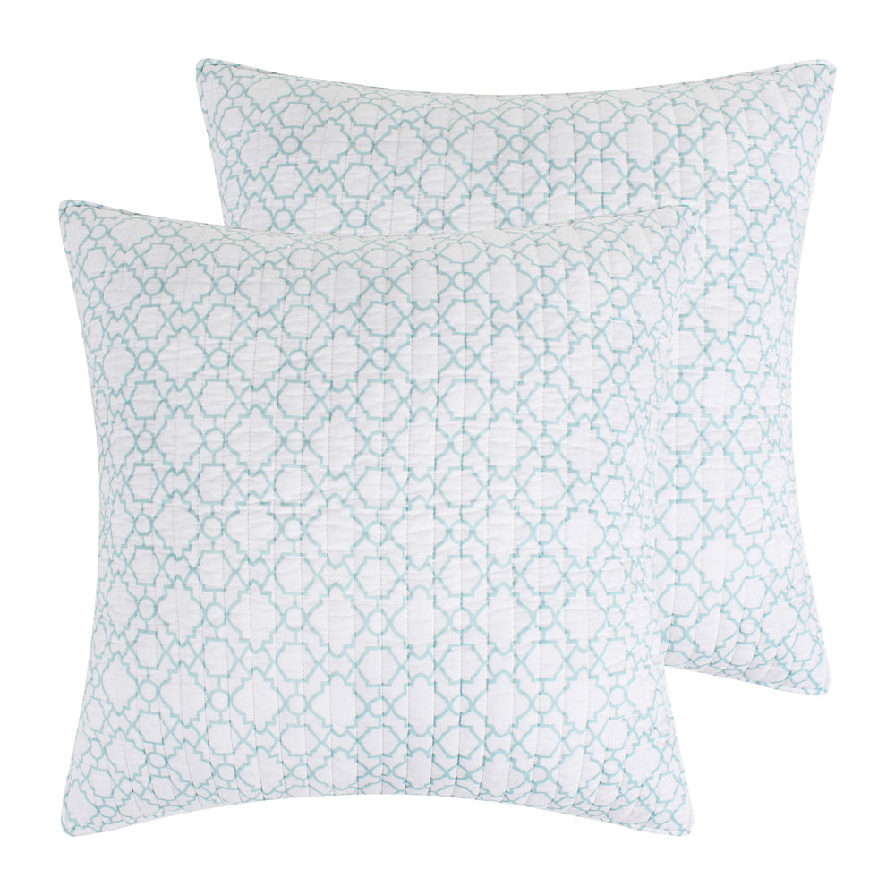 The Lara Spa Quilted Euro Sham by Levtex Home is inspired by geometric pattern in spa and white. Offered in geometric, this design will immediately transform your bedroom. These shams feature light, sophisticated geometric design. The Euro Sham (26x26in.) is microfiber, quilted with a cotton rich filler and is machine washable. Pillow inner not included. Enjoy this for years to come!