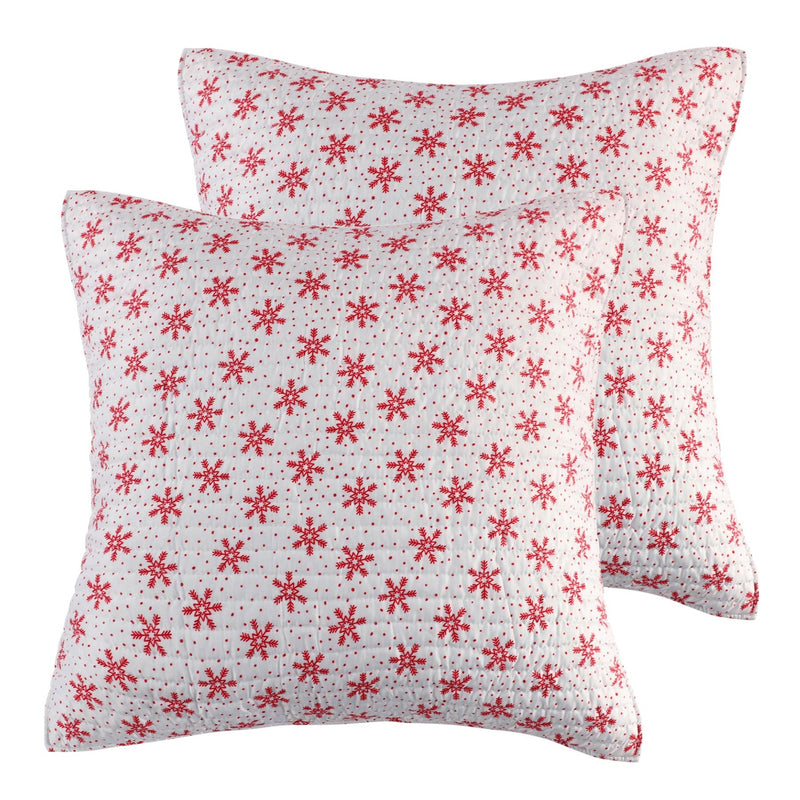 The Let It Snow euro shams will brighten any bed and perfectly complement the Levtex Home Let It Snow bedding collection. Add a little touch of the holiday spirit to any room in your home. These euro shams come as a set of 2 and are sized at 26x26in. They are a bright Christmas red. They come as a set of 2 and are unfilled. Bring the holidays home!