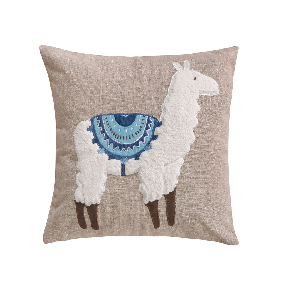 The Embroidered Llama decorative pillow matches perfectly with the Levtex Home Lillian bedding collection. This pillow is sized at 18 x 18in. and features detailed, embroidered llama on a beige canvas ground. The color palette makes this a versatile accessory for your bed, couch or favorite chair. The pillows comes pre-filled with a soft. luxurious feather inner.