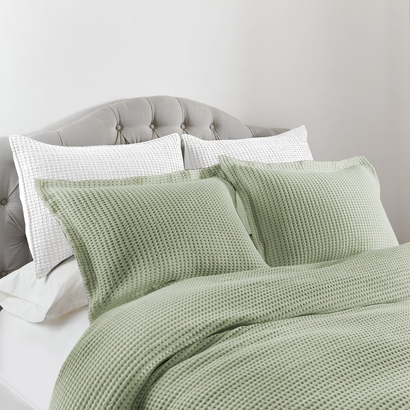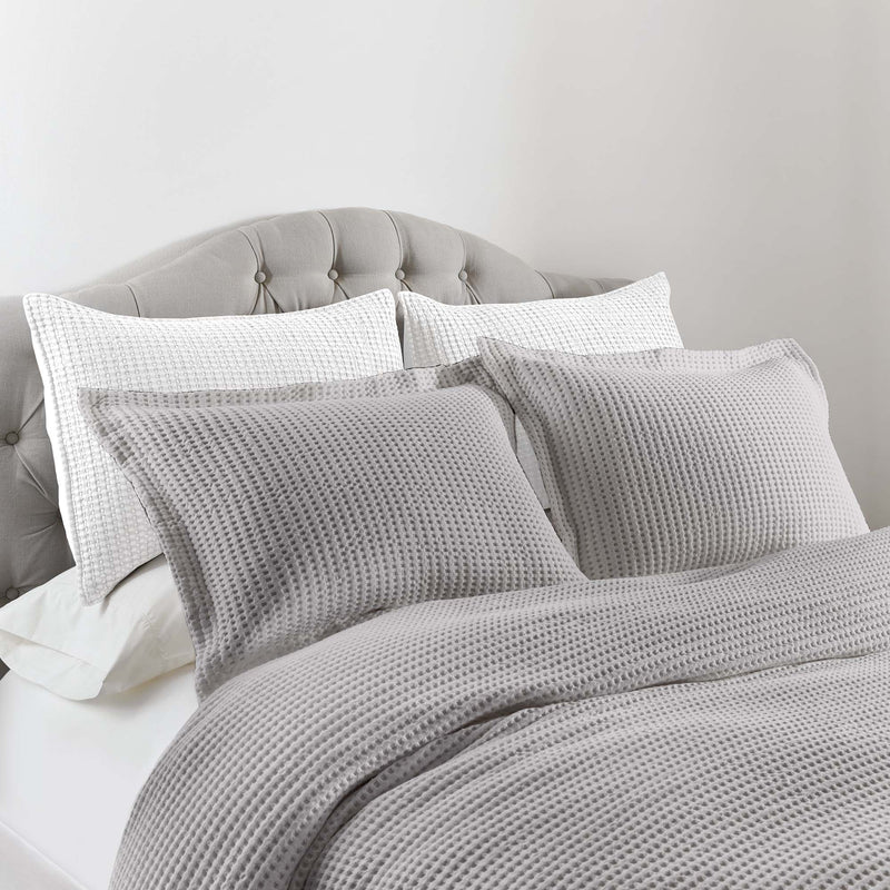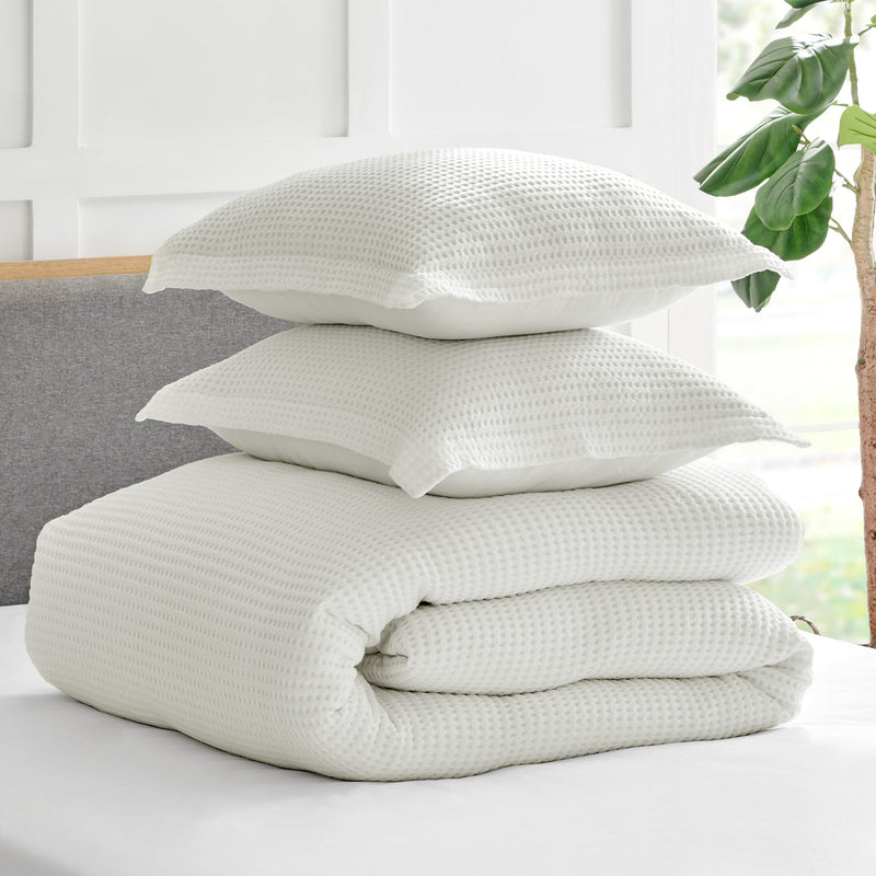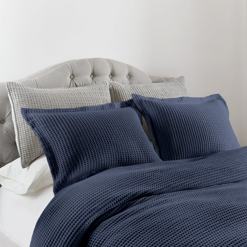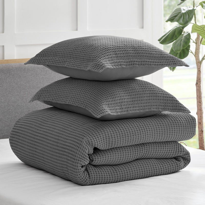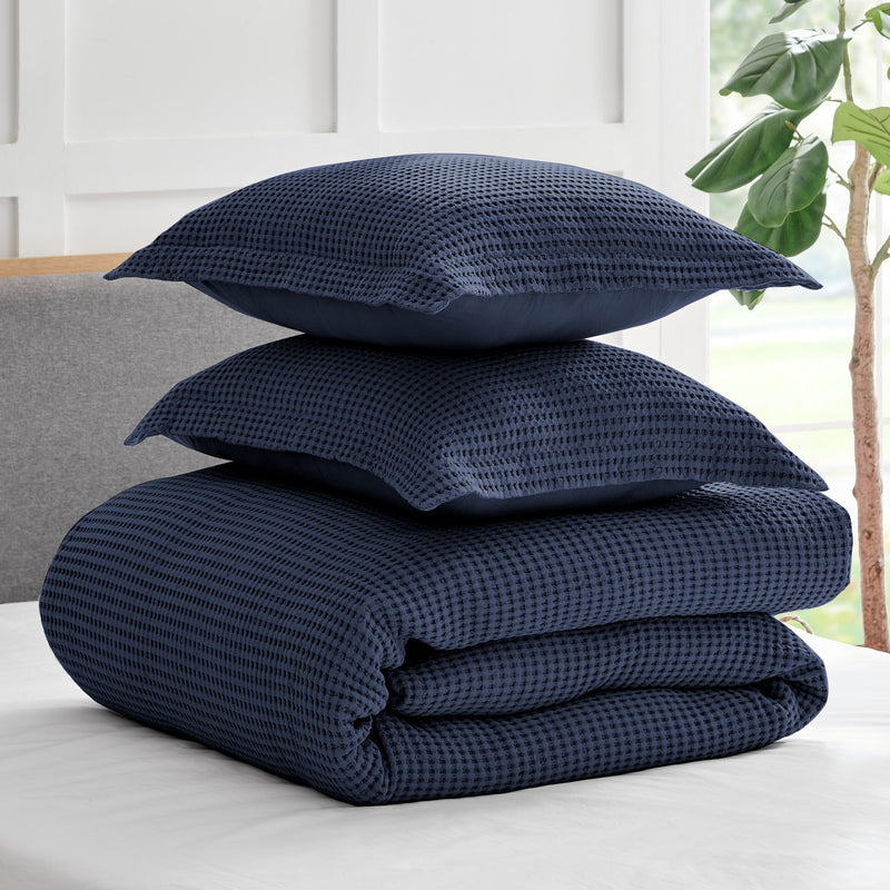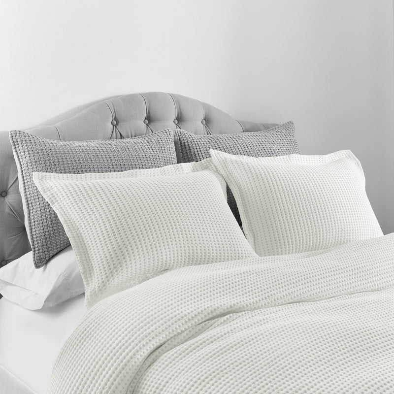 The Mills Waffle Duvet Cover Set Collection by Levtex Home is hip and contemporary. Offered in many colors, this design will immediately transform your bedroom. Made with a durable cotton, this duvet cover set features a waffle pattern. It has a fashionable waffle texture on the front and a 100% cotton solid on the reverse. It closes with easy to use, durable buttons. The Mills Waffle Duvet Cover Set is machine washable. Enjoy this for years to come!
