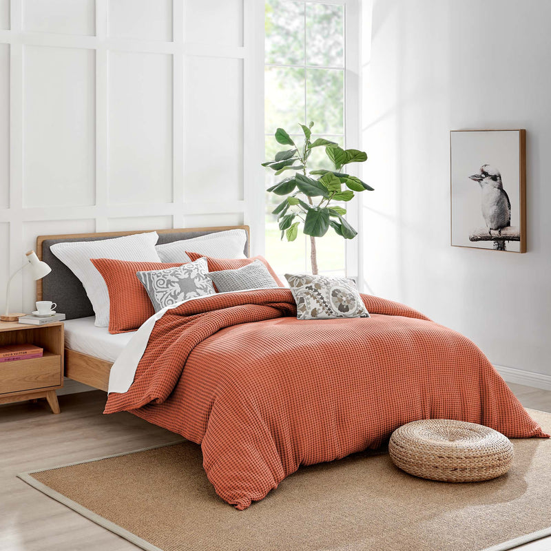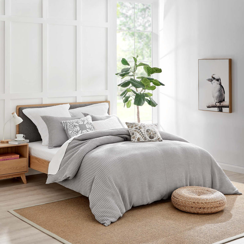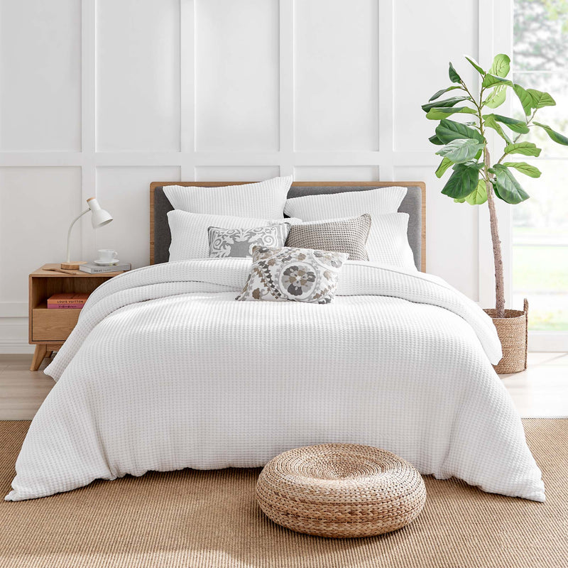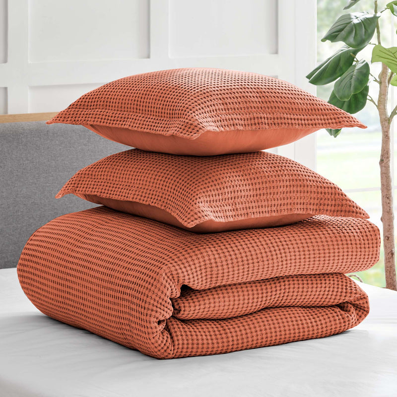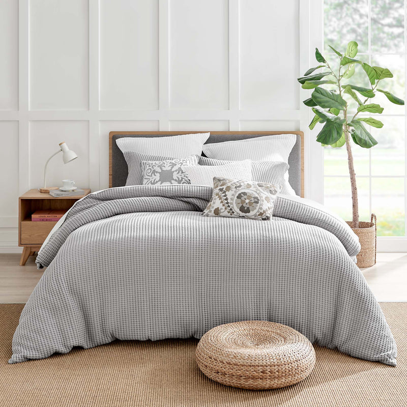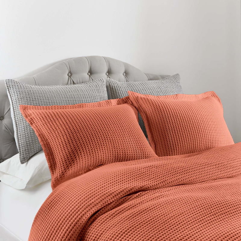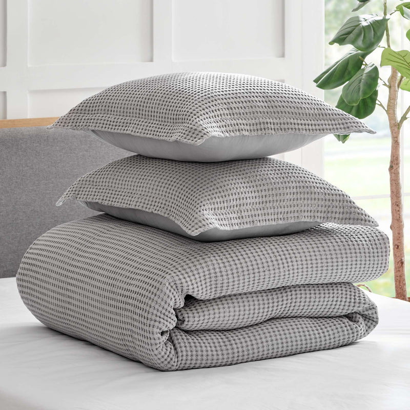 The Mills Waffle Duvet Cover Set Collection by Levtex Home is hip and contemporary. Offered in many colors, this design will immediately transform your bedroom. Made with a durable cotton, this duvet cover set features a waffle pattern. It has a fashionable waffle texture on the front and a 100% cotton solid on the reverse. It closes with easy to use, durable buttons. The Mills Waffle Duvet Cover Set is machine washable. Enjoy this for years to come!