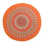 The Orange Peacock Round decorative pillow matches perfectly with the Levtex Home Mirage bedding collection. This pillow is sized at 18in. round and features an embroidered peacock medallion pattern on a bright orange ground. The fun color palette makes this a versatile accessory for your bed, couch or favorite chair. The pillows comes pre-filled with a soft, luxurious feather inner.