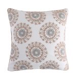 The Mini Medallions decorative pillow matches perfectly with the Levtex Home Nacala bedding collection. This pillow is sized at 18x18in. and features embroidered rich decorative medallions The taupe, grey and white color palette makes this a versatile accessory for your bed, couch or favorite chair. The pillow comes pre-filled with a soft, luxurious feather inner.