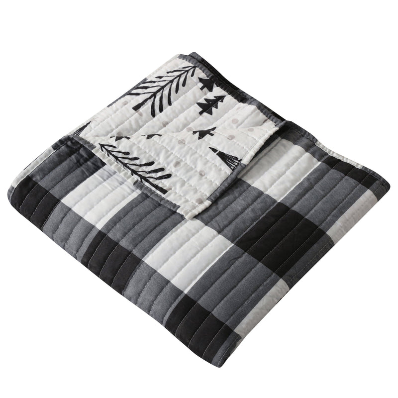 The Northern Star Reversible Quilted Throw by Levtex Home is inspired by a contemporary christmas landscape. Offered in shades of black and white, this design will immediately transform your bed, couch or favorite chair. Made with the softest lightweight brushed microfiber, this reversible throw features a decorative christmas tree design on the one side, reversing to a chic buffalo plaid in black and white on the other. The Quilted Throw is machine washable and filled with a cotton-rich filler (that includes cotton, polyester and other fibers). Snuggle up under this versatile throw while you watch the lights on your Christmas tree twinkle, or tell your favorite holiday stories.