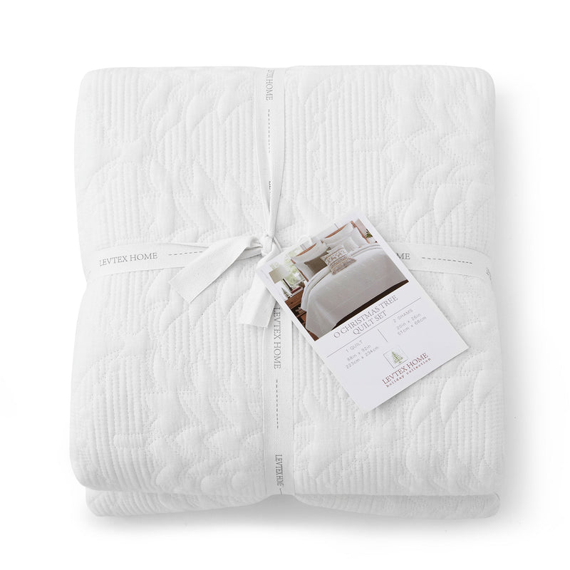 The O Christmas Tree Reversible Quilt Set by Levtex Home is inspired by white winter. Offered in white winter, this design will immediately transform your bedroom. This reversible quilt features rows and rows of embossed Christmas trees on a textured white ground on the front, reversing to a solid white on the back. This Quilt Set has a cotton front and back, filled with a cotton-rich filler, and is machine washable. Enjoy this for years to come!
