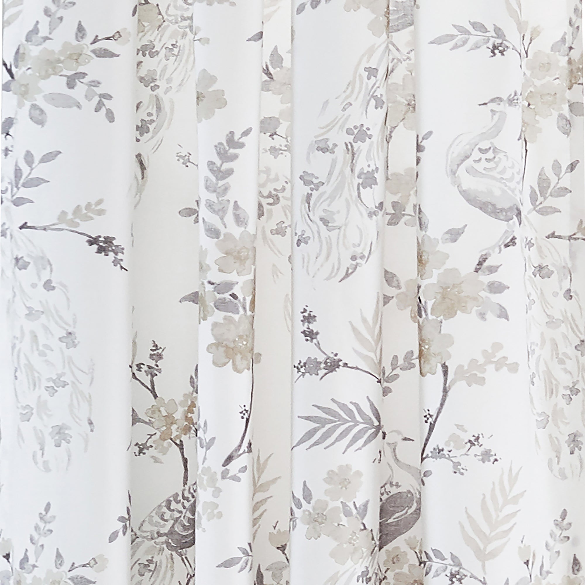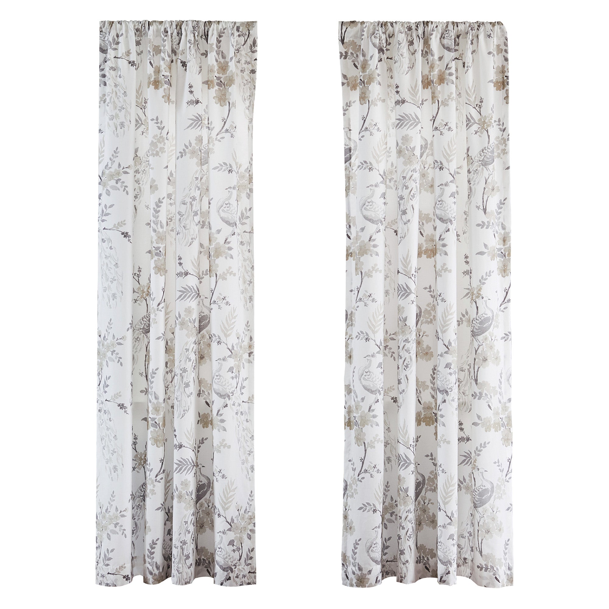 The Pisa drape panel complements the Levtex Home Pisa collection. This is the perfect accessory for any bathroom. Sized at 55x84in., this comes as a pair and features a delicate swirl of leaves and vines featuring a beautifully detailed peacock pattern. Made from 100% cotton, the Pisa decorative curtains are easy to care for. These come with with a rod pocket ready for installation.