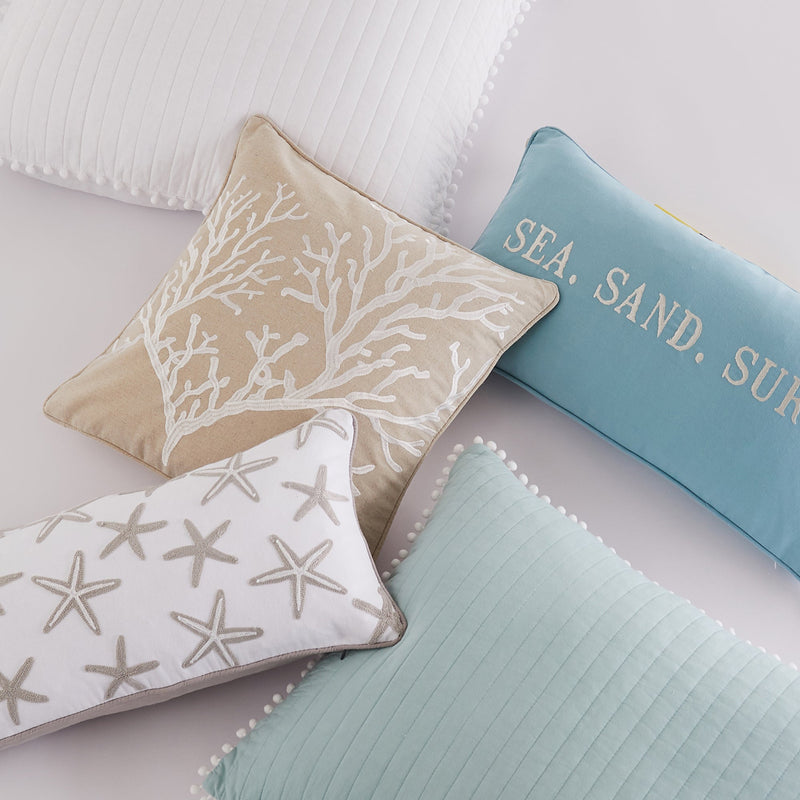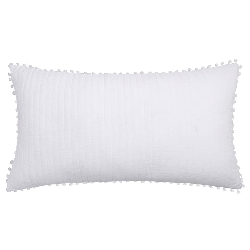 The Pom Pom king shams are the perfect complement to the Levtex Home Pom Pom collection. This is the perfect accessory to add a layer of dimension and truly complete your bedroom. Sized at 36x20in., the shams feature a classic quilted cotton in a beautiful shade of white edged in white pom poms. Made from 100% cotton, the Pom Pom shams are easy to care for. They come as a single without a filler.