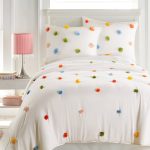 EASY CARE: Pre washed for your convenience, the Rainbow Pom Comforter and pillow sham set is easy to look after. Simply machine wash on a cold, gentle cycle, then line dry or tumble dry at low temperature.