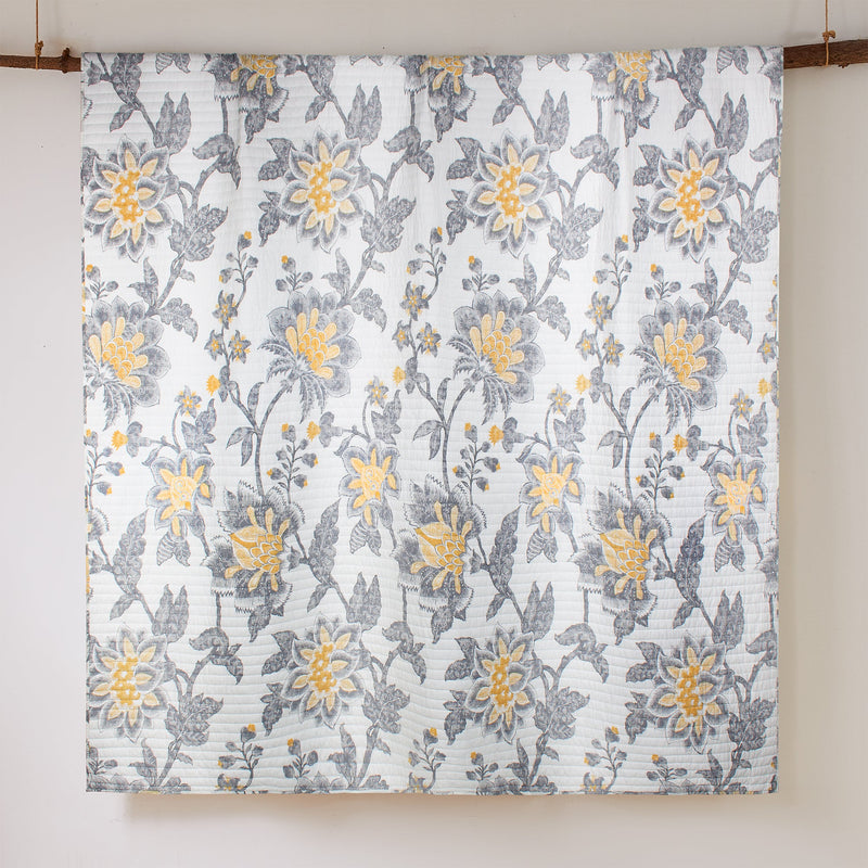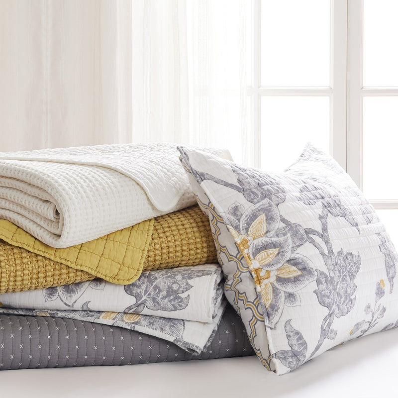 The Reverie Reversible Quilt Set by Levtex Home is inspired by a garden after a spring shower. This intricate paisley design will immediately transform your bedroom. Made with the softest lightweight cotton and filled with a cotton-rich filler (that includes cotton, polyester and other fibers), this reversible quilt features a grey, yellow, and white floral, reversing to a yellow, grey, and white geometric pattern on the other. The Quilt Set is machine washable. Enjoy this for years to come!
