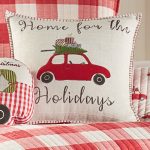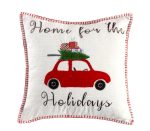 The Embroidered – Home For The Holidays decorative pillow matches perfectly with the Levtex Home Road Trip bedding collection. This pillow is sized at 18x18in. and features an appliqued car with tree and gifts on top and a blanket stitch border. The red, green, blue, black and white color palette makes this a versatile accessory for your bed, couch or favorite chair. The pillows comes pre-filled with a soft luxurious feather inner. Happy Holidays!