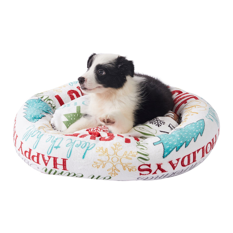 HOLIDAY LUXURY: Made from 100% Polyester Velour and filled with a soft and cushy polyester inner, the Santa Claus Lane pet bed is easy to care for. It is machine washable – follow the care instructions included with the product.