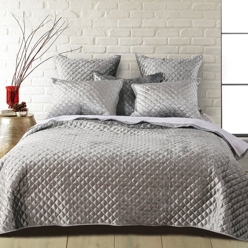 Home SOLID BEDDING Silver Crushed Velvet Quilt