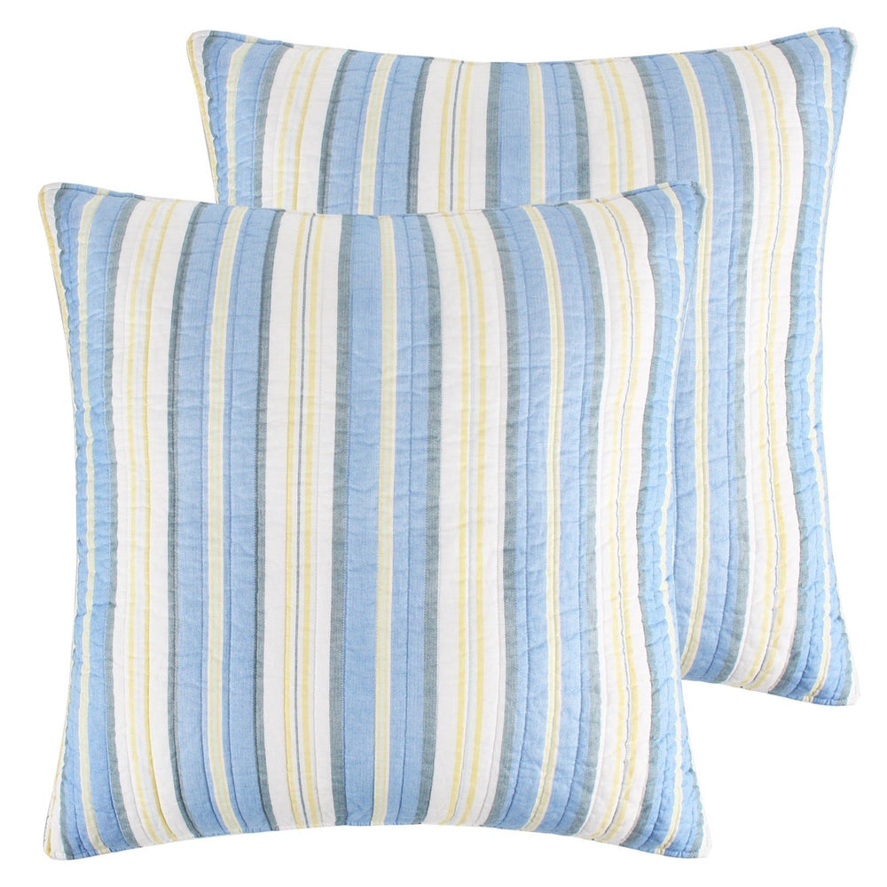 The Tropical Sea Quilted Euro Sham by Levtex Home is inspired by sea life on a coral reef. Offered in vibrant ocean and coral reef colors, this design will immediately transform your bedroom. These shams feature a classic blue, white and yellow stripe. The Euro Sham (26x26in.) is cotton, quilted with a cotton rich filler and is machine washable. Pillow inner not included. Enjoy this for years to come!