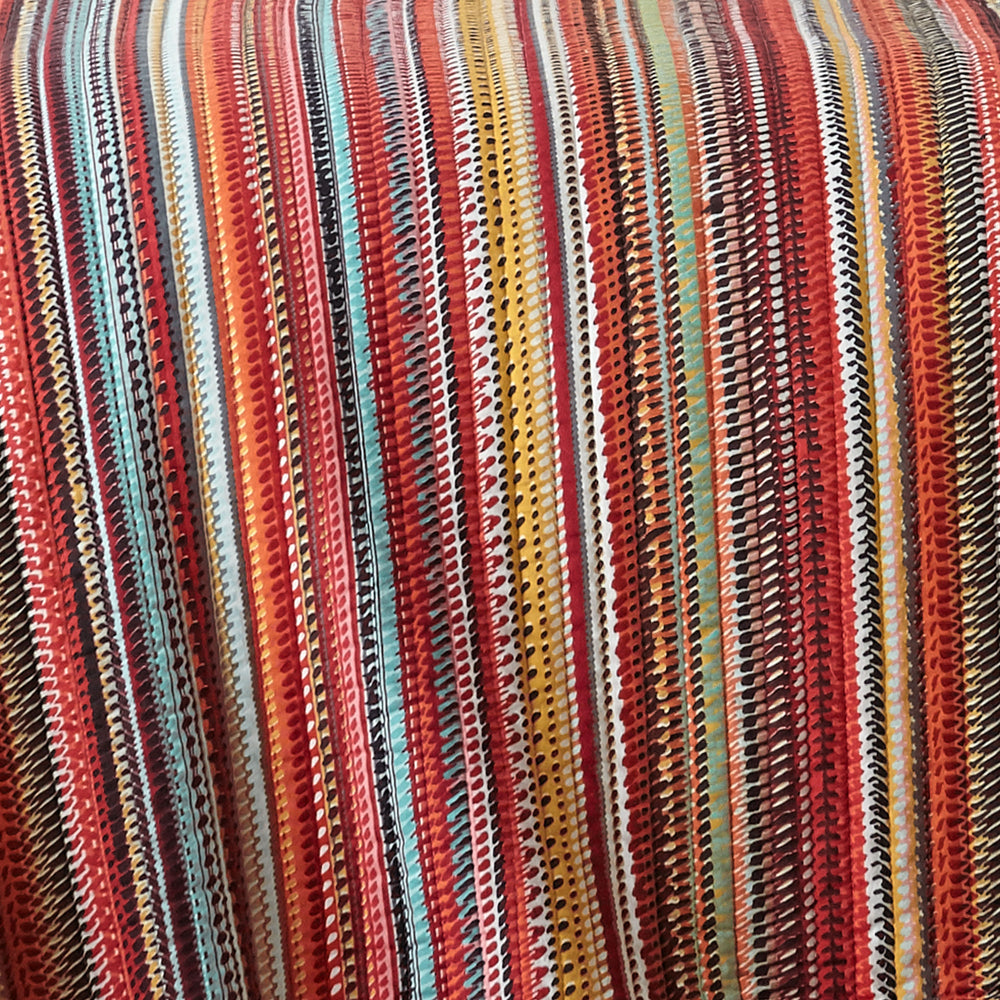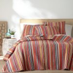 The Uluru Quilt Set by Levtex Home is inspired by a bold, bright, bohemian kaleidoscope of colors. Offered in shades of orange, teal, red, green, yellow, white, this design will immediately transform your bedroom. Made with the softest lightweight cotton, this quilt features a bold, bright stripe design on both sides. The Quilt Set is filled with a cotton-rich filler (that includes cotton, polyester and other fibers) and is machine washable. Enjoy this for years to come!