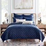 Embroidered Swiss Dot Navy Quilt Set