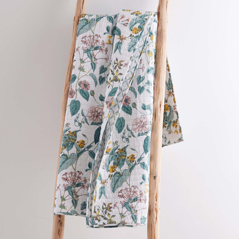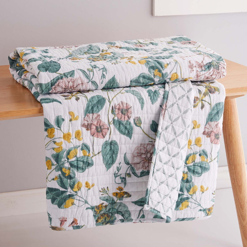 The Verity Reversible Throw by Levtex Home is inspired by beautiful floral gardens. Offered in pink, green, ochre and white, this design will immediately transform any room in your home. This throw features a rich collection of classic floral design on the front, reversing to a diamond green pattern on white on the back. The Throw (50x60in.) has a cotton front and cotton back, filled with a cotton-rich filler, and is machine washable. Enjoy this for years to come!