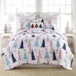 The White Pine Reversible Twin Quilt Set by Levtex Home is inspired by the joy of the holiday season. Offered in blue, red, green and white, this design will immediately transform your bedroom. This reversible quilt features a collection of festively decorated trees and snowflakes on white ground on the front, reversing to a pattern of grey snowflakes on the back. The Quilt and sham/s are made from polyester, filled with a cotton-rich filler, and are machine washable. Enjoy this for years to come!